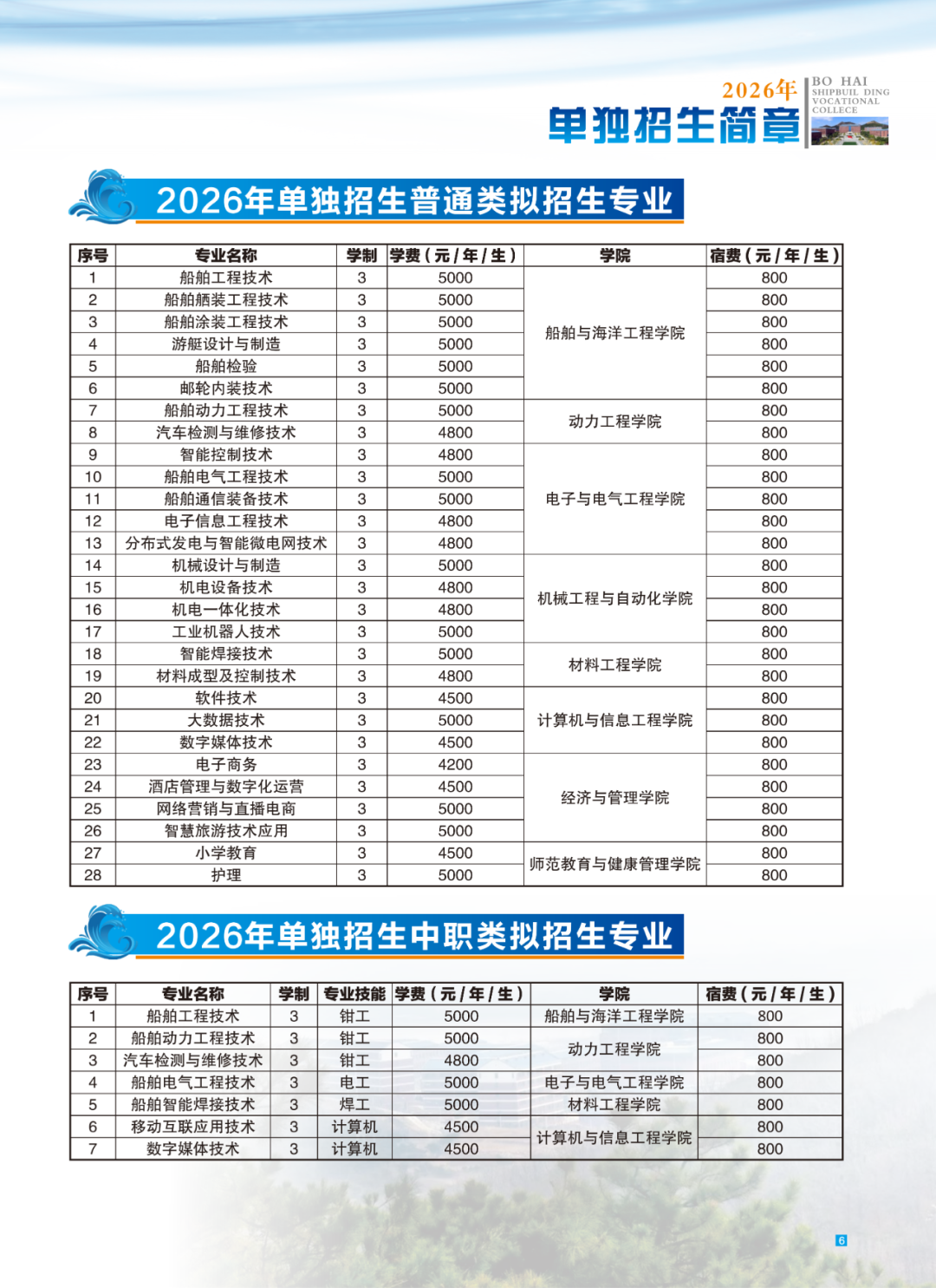 渤海船舶职业学院2018年单招拟招